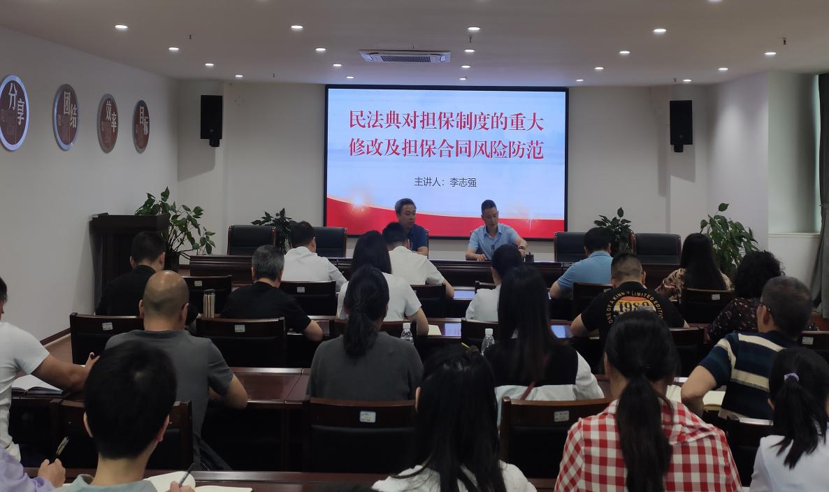 為進(jìn)一步提高風(fēng)險(xiǎn)防范能力,幫助干部職工在實(shí)際工作中理解并正確適用擔(dān)保制度的有關(guān)法律條文,強(qiáng)化干部職工法治意識(shí),按照“轉(zhuǎn)樹(shù)作抓”專項(xiàng)行動(dòng)方案和年度學(xué)法計(jì)劃,5月11日,市擔(dān)保公司開(kāi)展《民法典對(duì)擔(dān)保制度的重大修改及擔(dān)保合同風(fēng)險(xiǎn)防范》專題知識(shí)講座。
