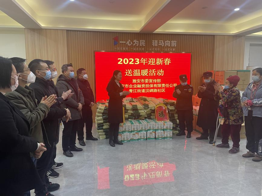 在新春佳節(jié)來(lái)臨之際,為讓困難群眾過(guò)上一個(gè)溫暖、祥和的春節(jié),1月13日,市擔(dān)保公司與市委宣傳部、漢碑路社區(qū)共同開展“迎新春送溫暖”活動(dòng),用愛心詮釋責(zé)任,用行動(dòng)書寫擔(dān)當(dāng)。